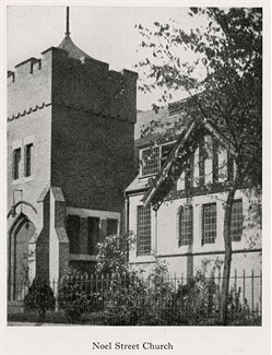 The Noel Street Preaching Station was a mission established as a daughter church of St Andrew’s Presbyterian Church in 1901. It was in the Hyson Green area of Nottingham, on the corner of Noel Street and Beaconsfield Street. It closed in the mid-20th century, and most of its congregation transferred to St Andrew’s. According to the brochure commemorating the centenary of St Andrew’s in 1966 (AU/V 5/3), former members of Noel Street were instrumental in establishing the Fellowship of Youth at St Andrew’s.