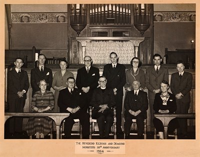 Photograph of Rev. R.K. Ross and the Deacons of St Ann's Well Road Congregational Church in 1954 (CU/Z1/P/1)