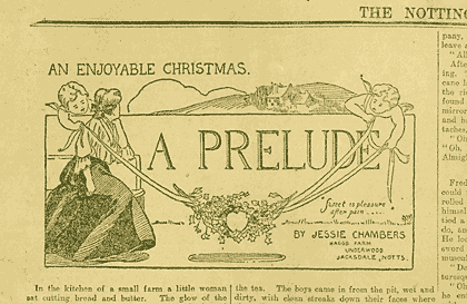 Lawrence's first appearance in print was a short story, entitled 'A Prelude', which won a prize in the Nottinghamshire Guardian competition in December 1907. Candidates were limited to one entry, so Lawrence asked two of his friends to submit entries in their name. 'A Prelude' was submitted by Jessie Chambers, and published under her name.
