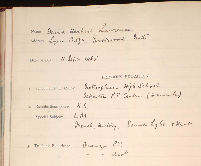 There are few references in the University archives to the student experiences of D.H. Lawrence or his work as a student.