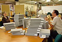 In preparation for the move staff repackaged fragile books in customised boxes