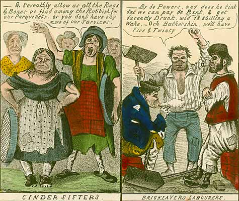 The trades unions - a general strike! Details from a cartoon by Charles Jameson Grant (fl. 1830-1852) [MS 482/4]
