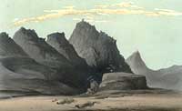 Baring-Gould's images of Icelandic sites are among the most striking of the illustrated travels. In his watercolours of Kálfs-Tindar, Hlithar-Fjall and Geitlands-Jökull we see both the bleakness and beauty of the countryside.