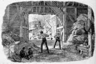 Photographic copy of an engraving of a threshing barn, 19th century