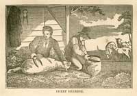 Illustration of sheep-shearing from A Picture of the seasons (London: printed for W. Wetton, sold by C.F. Cock, 1831) From Briggs Collection LT210.S/P 4