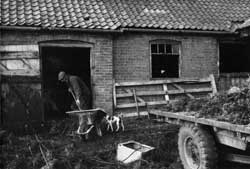 Farmer shovelling straw and manure at Town End Farm, Laxton, 1960s From MS 829/4/74