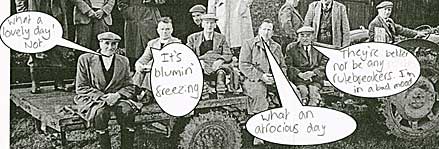 J.D. Chambers and Philip Lyth dressed as 19th-century farm workers, c.1960