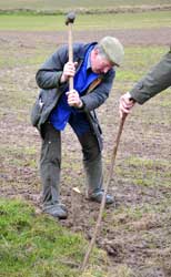 Bailiff of the manor hammering in a boundary stake, 2008