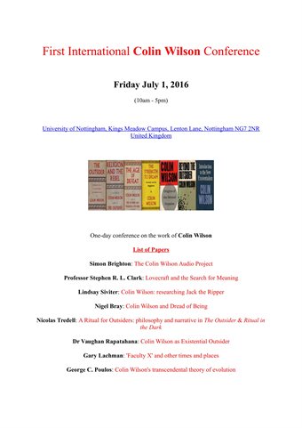 Colin Wilson Conference 2016