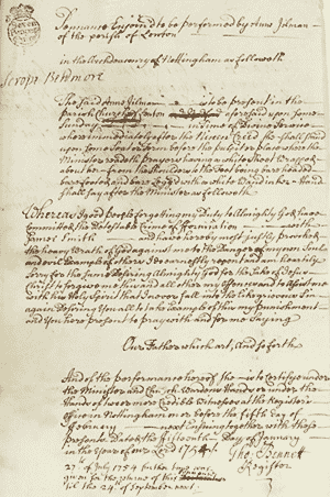 On 27th November 1753, the churchwardens of Lenton appeared at the Archdeaconry court. They alleged that Anne Jilman had given birth to an illegitimate child, father unknown.