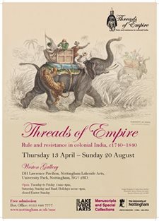 Based on The University of Nottingham’s extensive archives on colonial India, 'Threads of Empire' examined the history of tense negotiation, resistance and rebellion that lay behind the emergence of India as the ‘Jewel in the Crown’ of the British Empire. It explored the rise of the British Empire in India, predominantly between 1740 and 1840.