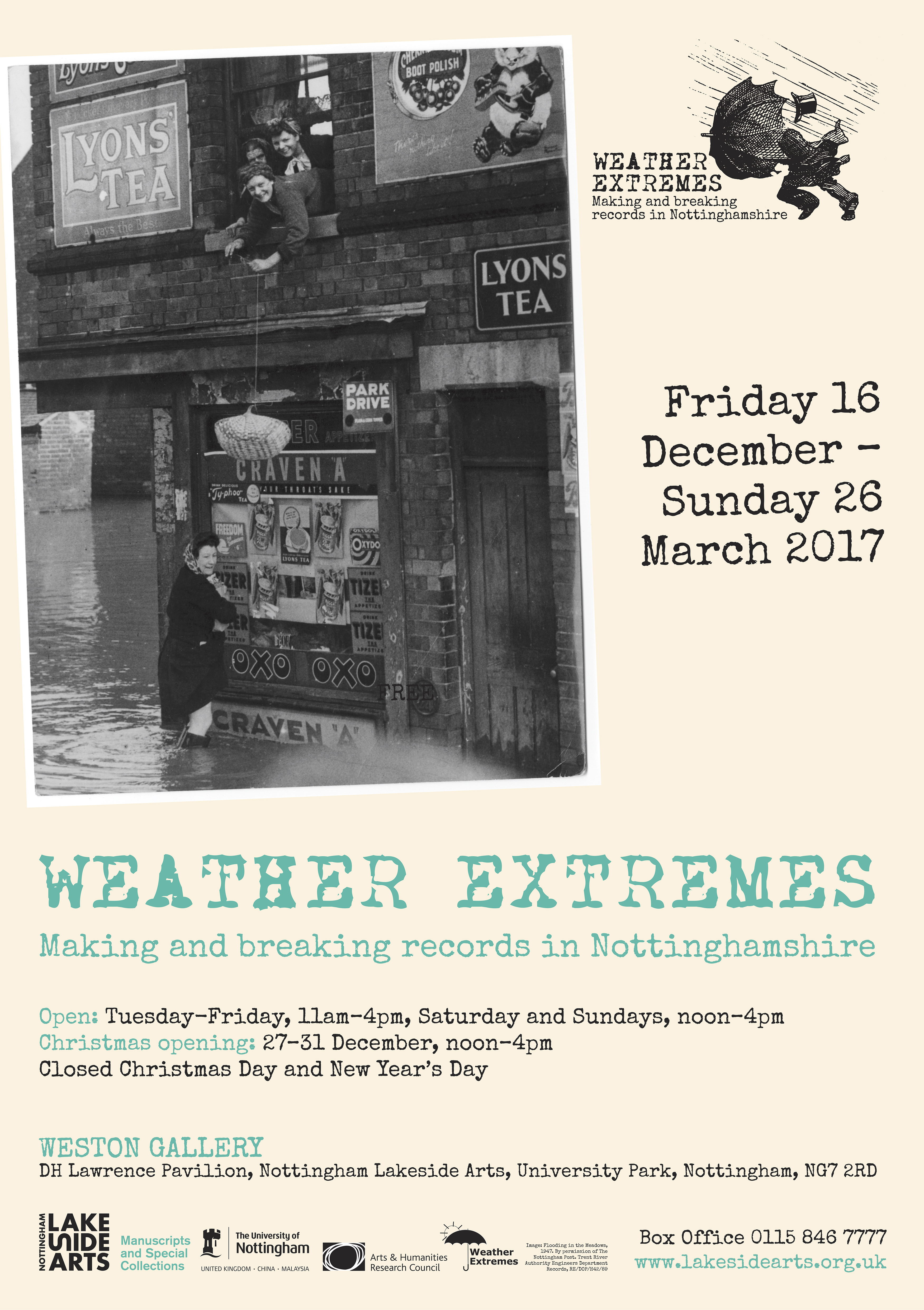 The exhibition was jointly curated by Professor Georgina Endfield and Dr Lucy Veale of the School of Geography and Manuscripts and Special Collections at The University of Nottingham. It was based on research carried out during the Weather Extremes research project funded by the Arts and Humanities Research Council (AHRC)
