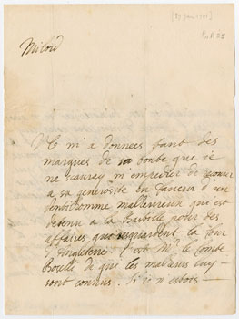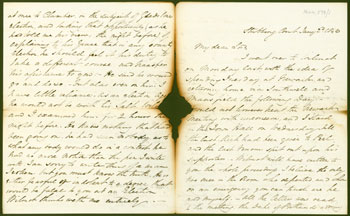 Letter with fragile areas, fading and discolouration caused by humidity and mould (Pl C 63/8)