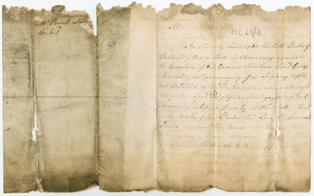 Title deed which has been folded and then partially eaten by rodents (Pa E 8)