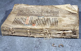 Unbound medieval volume which has suffered damage to its spine and outside pages (WLC/LM/3); and bound medieval volume in good condition (WLC/LM/8)