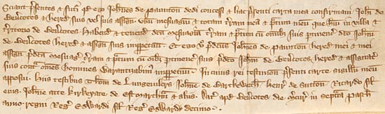 [line 1] Know all people present and to come that I John of Paunton have given granted and by this my present charter confirmed to John of