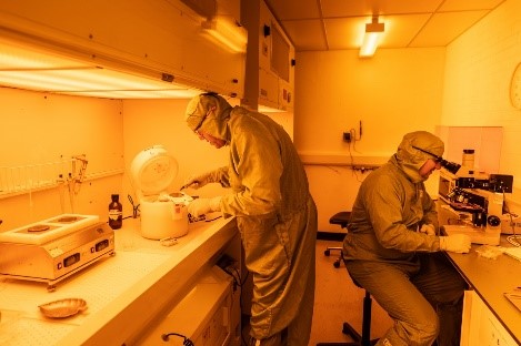 Housed over 2 sites and staffed by 3 full time experts it allows for electron beam lithography, photolithography, deposition of metals and dielectrics, dry and wet etching of materials and many more.