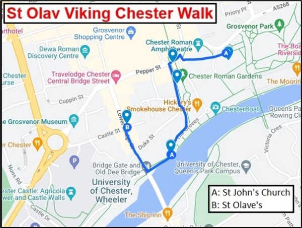 The St. Olav's Wirral-Chester Viking Heritage walks - started in conjunction with the Grosvenor Museum in Chester and the Municipality of Trondheim in 2008 after a pilot walk in 2007, take place at the end of July/early August, and 2025 will be the 18th year of the walks. They celebrate Wirral and Chester's great Viking tradition, started by Norsemen led by Ingimund, who, in and after AD902 "settled in great numbers". The walks also commemorate Norway's patron saint St Olav whose life and works are celebrated across Scandinavia, particularly in Norway. Every year in July-August Norwegians commemorate him with a series of events including several walks which go to Nidaros Cathedral in Trondheim where he is buried.