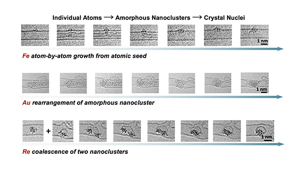 The group managed to film the crystal nucleation of three different metals with atomic resolution, in particles composed of only one or two dozen metal atoms. Crucially, in all three cases they were able to record before, during, and after the key moment of nucleation.