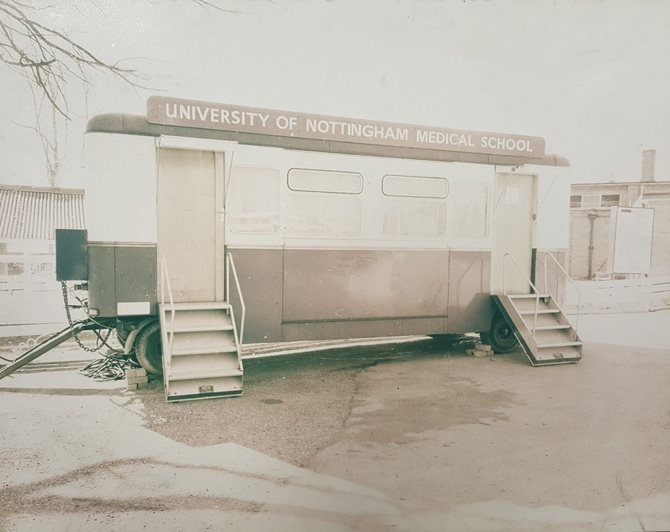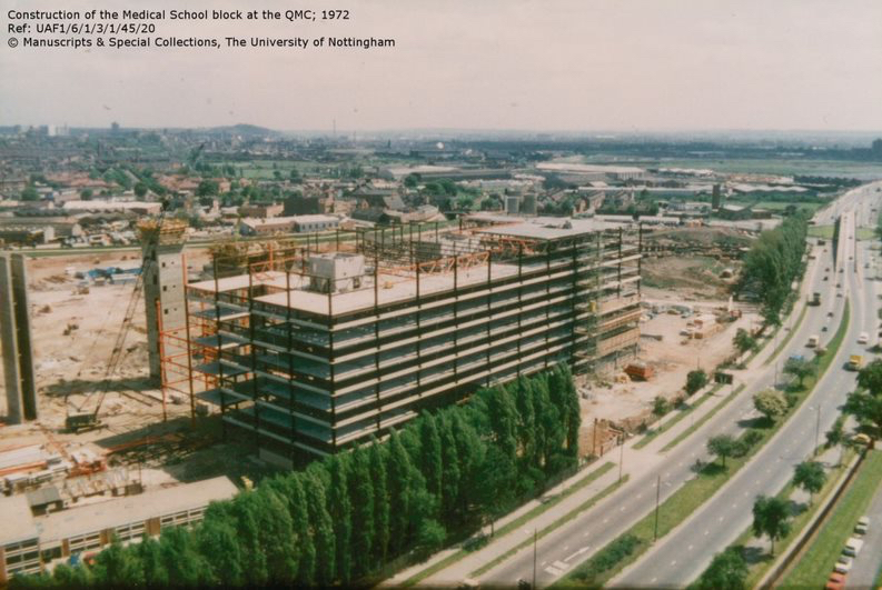 The idea for a Medical School at Nottingham was first suggested after World War II. Healthcare in the East Midlands was badly under-resourced. But it was not until a grant was awarded in 1964 that the University was able to establish the first new Medical School in England in the 20th century. The School grew from humble beginnings in the cowsheds and caravan behind the Portland Building on University Park, where it was based before the QMC was opened in 1977.