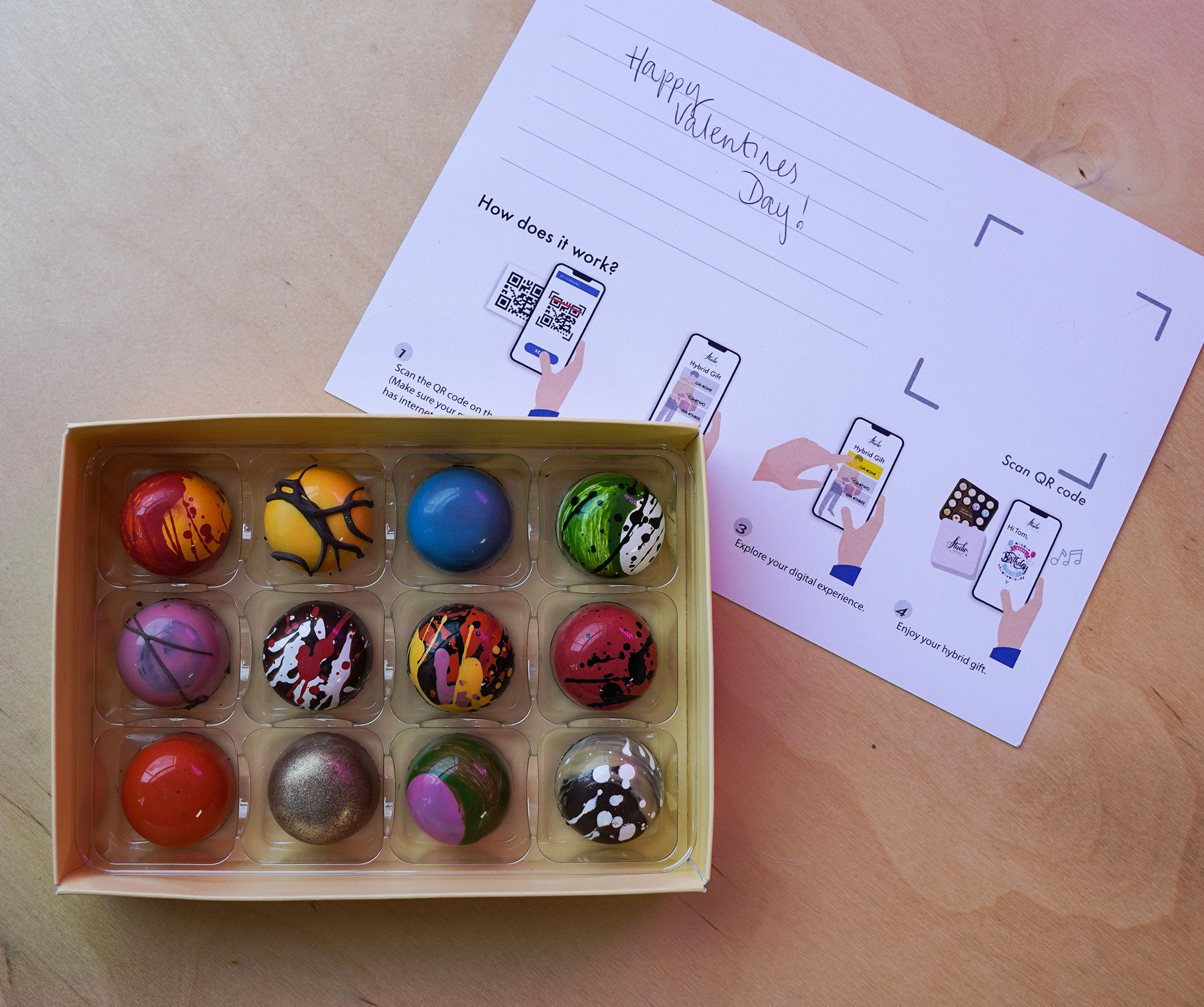 The university trialled the platform for the first time with Studio Chocolate in Nottingham to offer a hybrid chocolate Valentine’s gift. Studio Chocolate’s beautifully designed, handmade Hybrid Artist Chocolate Collection was offered with a unique link to a web page where the customer could easily add or create their own content. Along with the chocolates, the lucky recipients will receive a QR code that will open and play their digital gift.