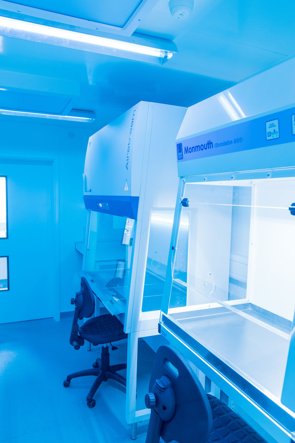 To ensure the DNA can be isolated and analysed without any contamination the lab has been built as a clean room environment. To achieve this, bespoke features have been incorporated into the building, including an air filtration system that filters incoming air, removing any particles that could contaminate samples. The ceiling is also fitted with contamination-destroying ultraviolet lights that switch on at night to ensure the lab remains clean.