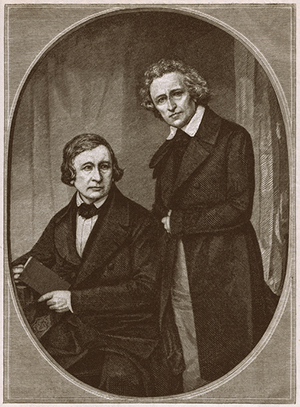 The Brothers Wilhelm and Jacob Grimm. Wood engraving, published in 1879.