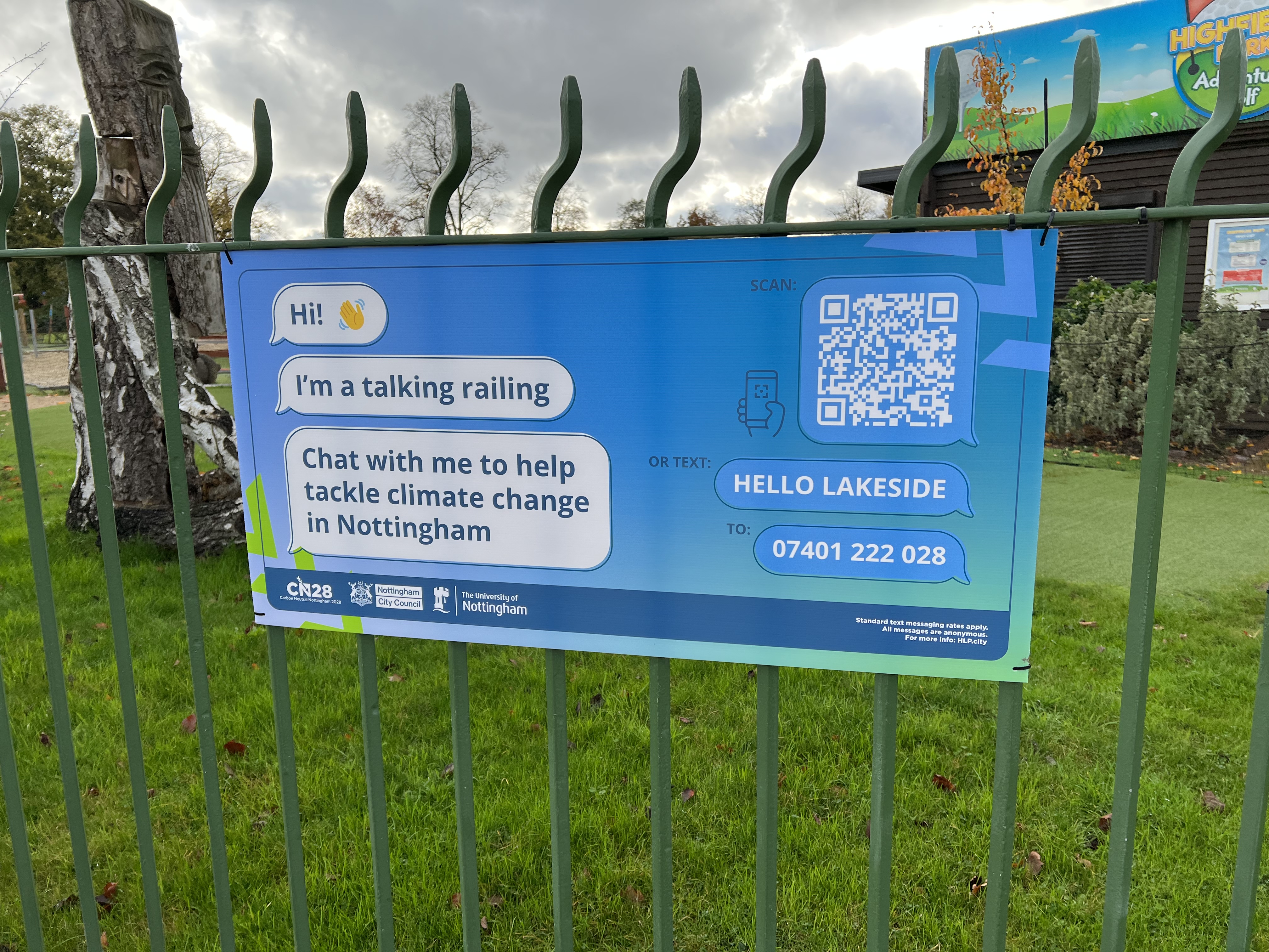 The University of Nottingham and Nottingham City Council have teamed up with creative research company, Hello Lamp Post, to introduce interactive, playful, talking street furniture that will explore attitudes to climate change and sustainability.