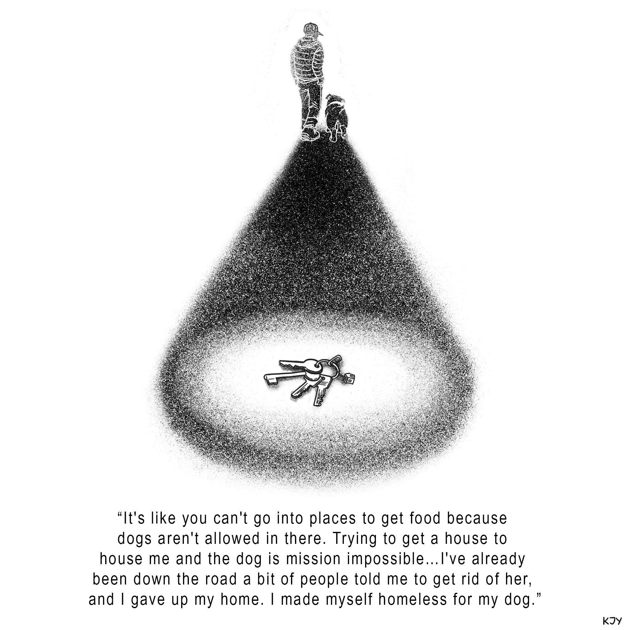 Pet ownership among homeless people is common and has been linked with a range of health and social benefits, including alleviating loneliness, isolation and depression and a reduction in suicidal thoughts, substance abuse and criminal activity. However, pet ownership is also thought to perpetuate homelessness, by restricting access to support services.