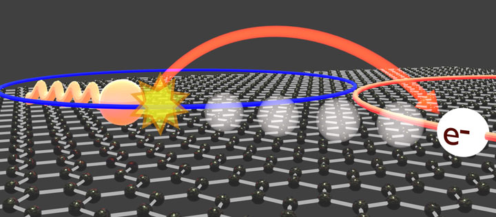 The work, published in Nature Communications, describes how electrons in a single atomically-thin sheet of graphene scatter off the vibrating carbon atoms which make up the hexagonal crystal lattice.