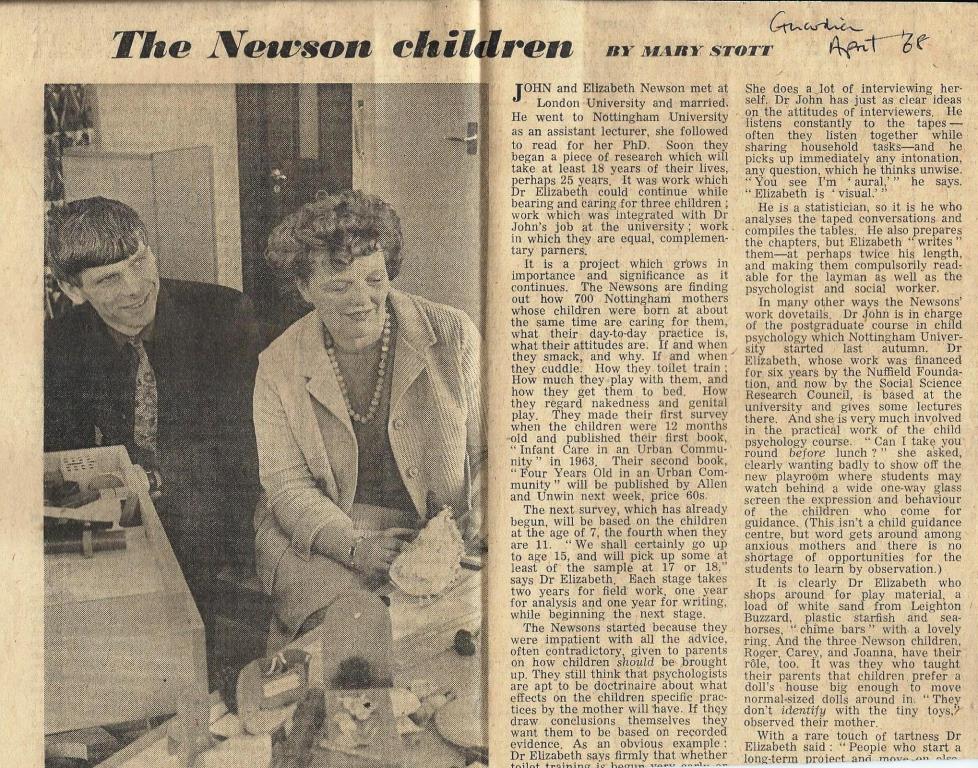 The Newsons’ niece, Professor Carrie Paechter, carries on the Newson family tradition and is Director of the Nottingham Centre for Children, Young People and Families at Nottingham Trent University.