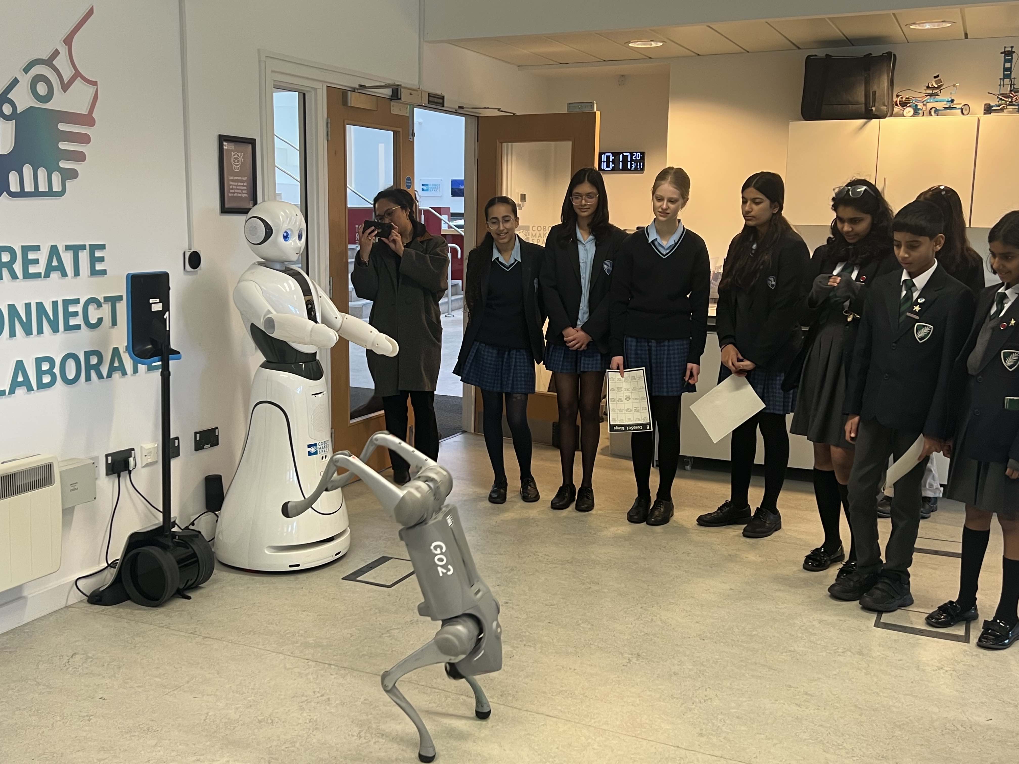 During the celebration event pupils visited the University’s Cobot Maker Space where researchers explore human-robot collaboration across a wide range of domains from assistive technologies to manufacturing, to creative performance. The pupils got to see the robots in action and talked to some of the experts.