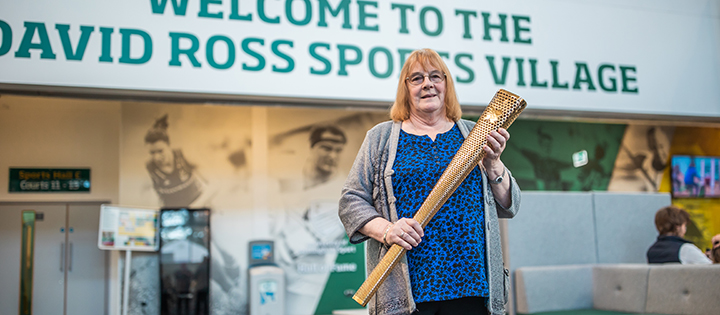 Now thanks to her kind donation, the torch has found a new home at the university’s flagship sporting venue, the David Ross Sports Centre on University Park. It takes pride of place in the trophy display cabinet which is part of the Sporting Hall of Fame, acknowledging students who have gone on to achieve success at an international level.