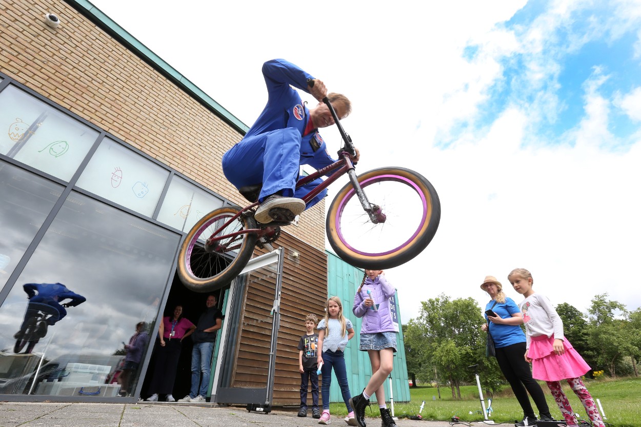 In addition to the presentation, where Jez demonstrated the effects of gravity using his BMX, there were several other activities on offer for children to enjoy, including the opportunity to dress up as an astronaut, shoot an air rocket and touch real meteorites.