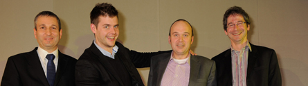 Professor Cowley, Professor Heywood and Dr Goodwin received the award from David Holdstock representing category sponsor LGcommunications.
