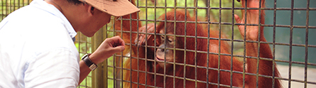Dr Neil Mennie, from The University of Nottingham Malaysia Campus (UNMC), has received funding from Ministry of Science and Technology and Innovation, Malaysia (MOSTI) to study the eye movements of Tsunami — a seven year old orangutan at The National Zoo of Malaysia (Zoo Negara). Not only will Dr Mennie’s research address vital questions about the visual cognition of humans and apes in natural tasks, it will also provide valuable enrichment for the juvenile captive-born orangutan.