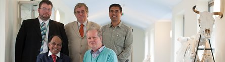Photo: [back row, L-R] Dr Robert Atterbury, The University Of Nottingham; Dr David Harper, Chief Scientific Officer, AmpliPhi Biosciences; Sudhakar Bhandare, PhD student, The University Of Nottingham; [front row, L-R] Dr BL Sarkar, National Institute for Cholera and Enteric Diseases; Professor Paul Barrow, The University Of Nottingham.