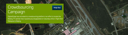 DigitalGlobe is a leading provider of high-resolution remote sensing images, has activated FirstLook — an online subscription service for emergency management which delivers web-based access to pre and post event imagery of world disasters to almost any desktop or web based mapping platform. It is used by emergency-response agencies in natural disasters, manmade crises and human interest scenarios. Now, two of its five satellites are scanning and capturing the images which are then available on http://www.tomnod.com/nod/challenge/malaysiaairsar2014 for volunteers to scan and tag the images.