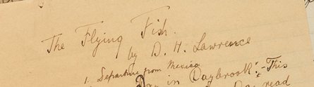 Lawrence did not follow the doctor’s orders. In the following days he dictated the first nine pages of 'The Flying Fish' to his wife Frieda. Then, around 19 March, he felt well enough to write himself, correcting her transcription and continuing to work on the story until it filled thirty-eight manuscript pages. He broke off at the top of the thirty-ninth page.