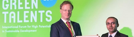 Ahmed was one of 25 young scientists from 21 countries who were honoured in this year’s Green Talent Awards ceremony which was held in Berlin on 27th October with guest of honour, Matthias Graf von Kielmansegg, Head of Department at the German Federal Ministry of Education and Research.