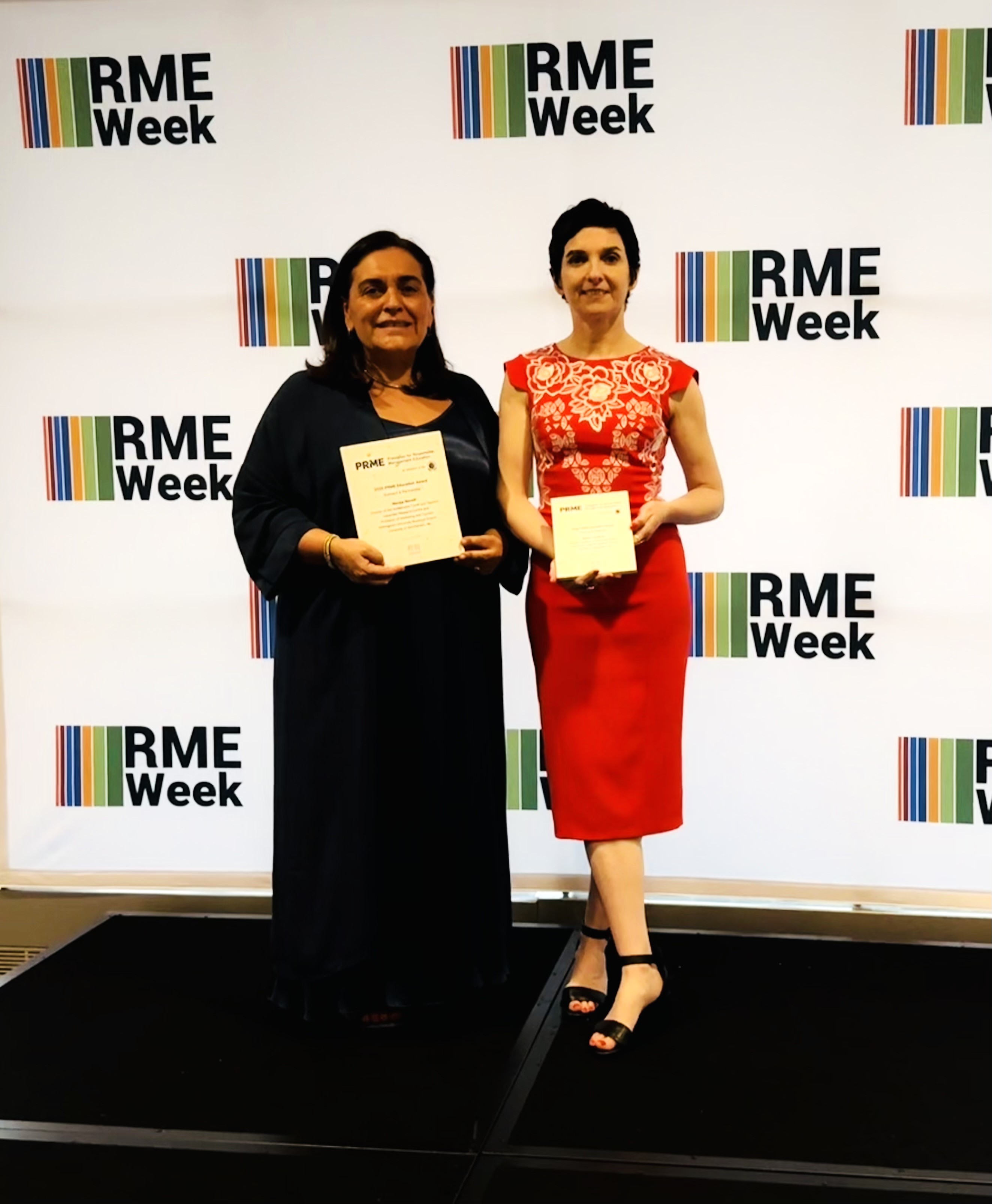I am humbled and proud to be the recipient of this year's PRME Outreach and Partnership Award as it is a recognition of 25 years' commitment to collaborative and impact centred research. Over the years, I have been privileged to work in many locations around the world, which has enabled me to learn from being in the field with an incredibly inspiring set of people. Without their input, dedication and encouragement I would not have been here today, and I would like to dedicate this award to them.”