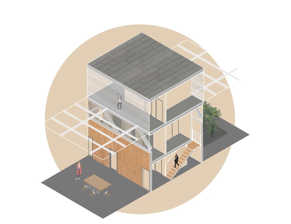 Laura Fairchild (K10I – MArch Architecture RIBA Part II, Year 6, S1 – Continuity) – To Reuse or Replace prioritises reuse and transformation over the demolition of existing buildings. In this case the project looks at a warehouse due to be razed to the ground, reusing the building to create social housing apartments with additional communal facilities including a co-working space (winter garden) and a shared kitchen. The proposal aims to maintaining the existing structure while improving its thermal performance and to increase its overall density. The key alternations are the removal of the internal walls and the creations of alternating strips of housing and social spaces to improve community cohesion and act as a thermal buffer between the flats.