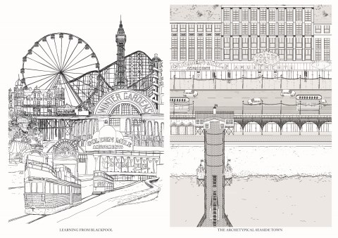 Preparatory drawing of Blackpool seafront by Declan Clarke