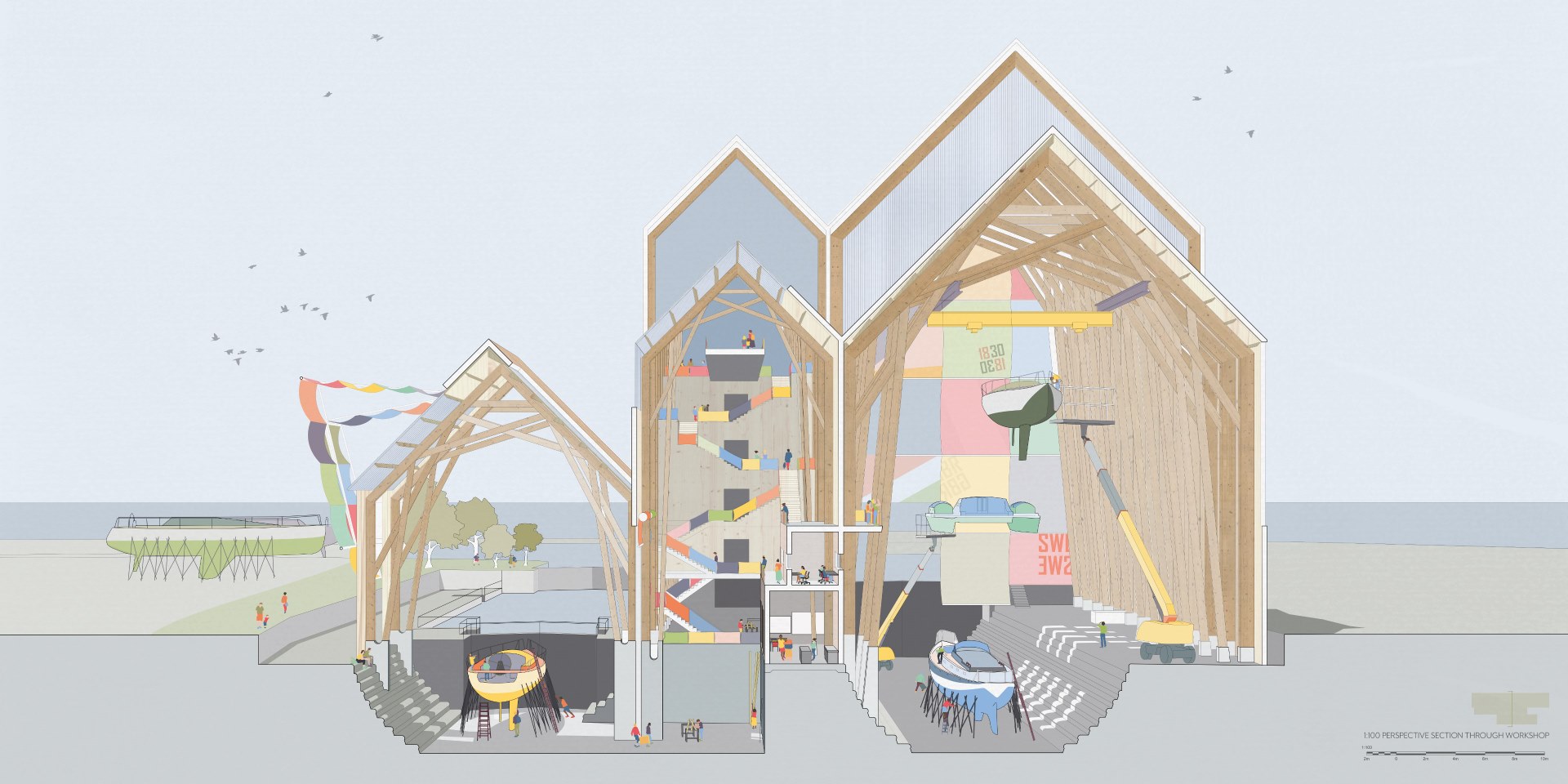 A flagship centre for low-carbon sea travel at Liverpool Docks, a new cultural hub to revitalise Blackpool seafront; and energy-saving social housing borne from a warehouse earmarked for demolition are among the show-stopping projects in the student architecture exhibition being held at the University of Nottingham.