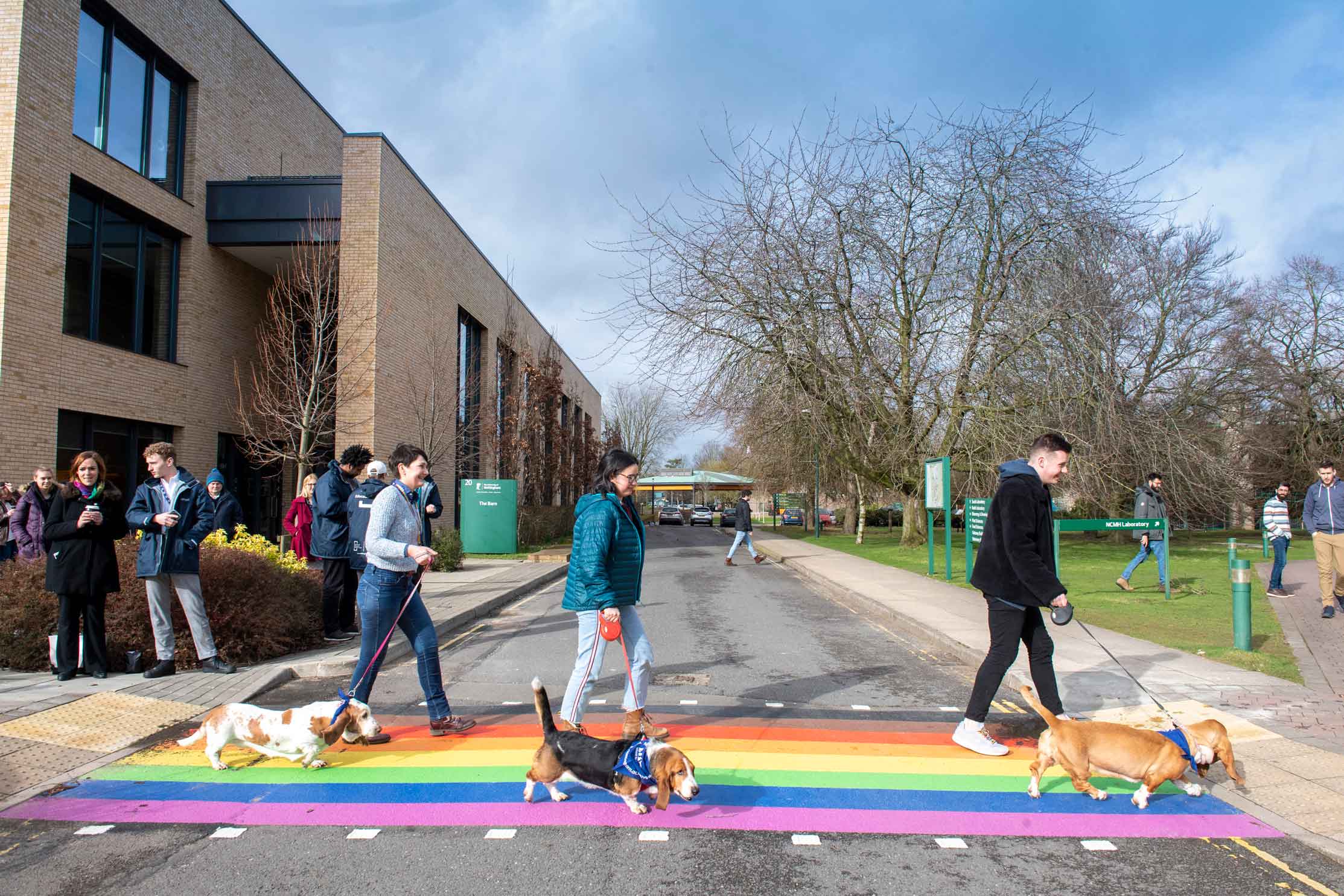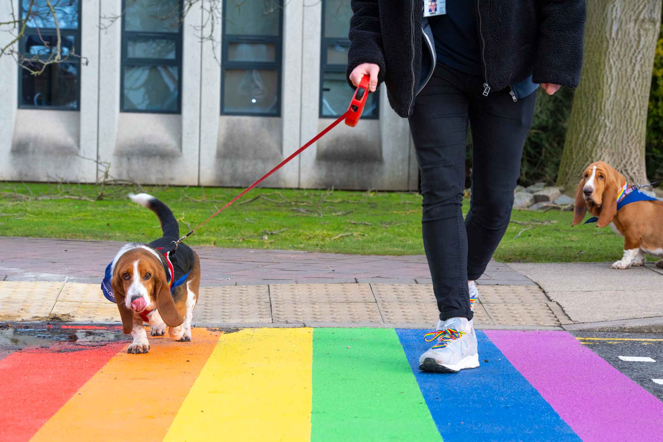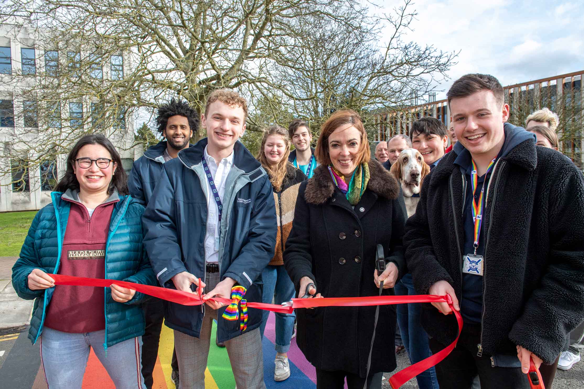 Staff, students and pets have come together to celebrate the unveiling of the University of Nottingham’s new rainbow ‘zebra’ crossings, in support of its LGBT+ community.
