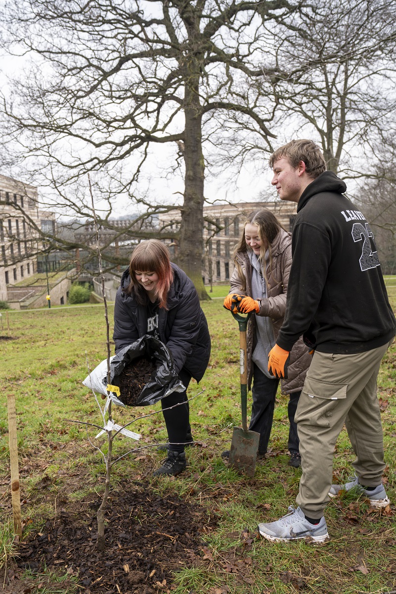 Students from the University of Nottingham, Nottingham College and Bluecoat Aspley Academy planted trees on campus
