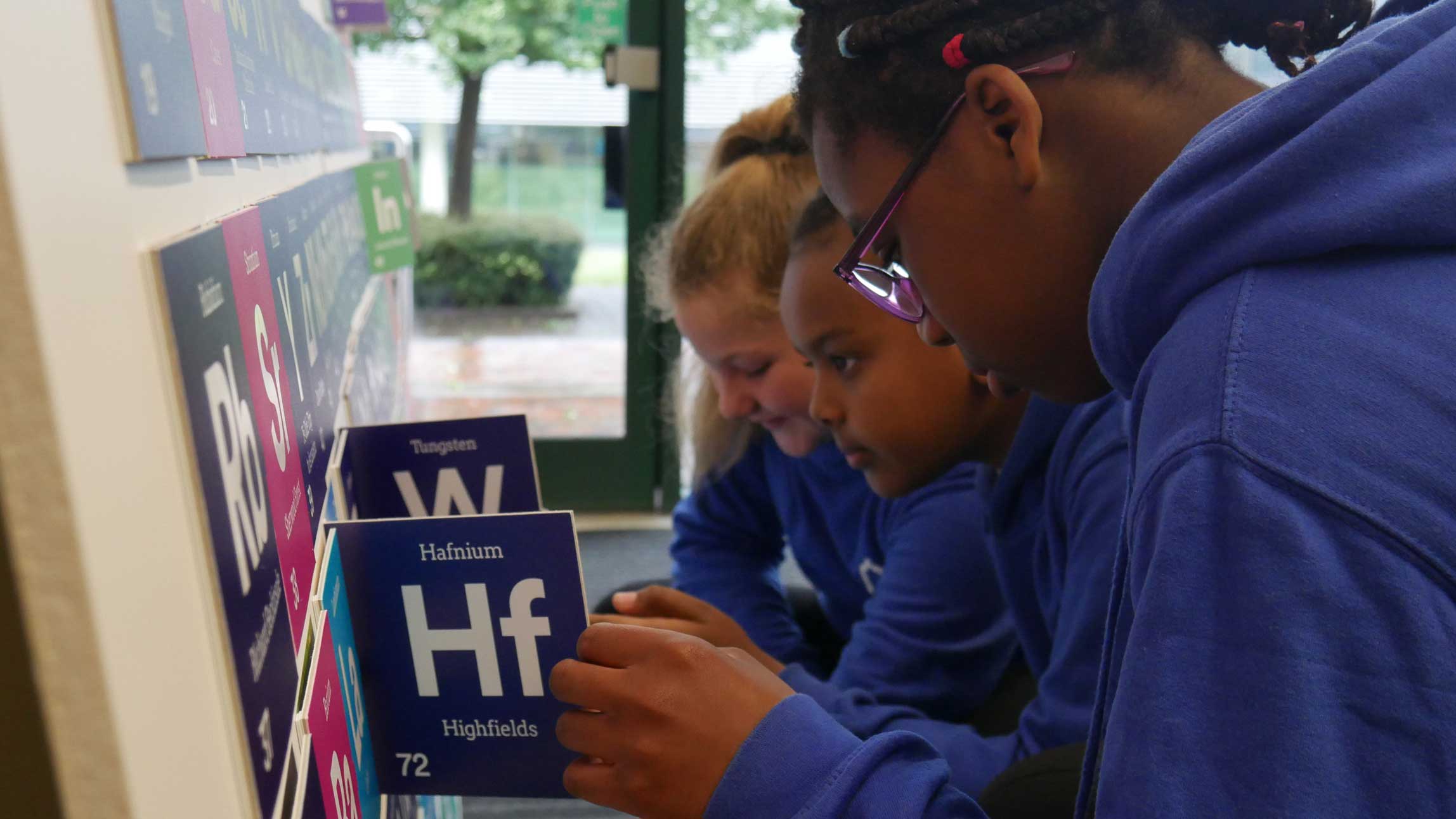 Children from Blue Bell Hill Primary School have been given an exclusive sneak preview of the first- ever Nottingham Periodic Table, ahead of its official unveiling at the University of Nottingham’s Wonder event on the 15th June.