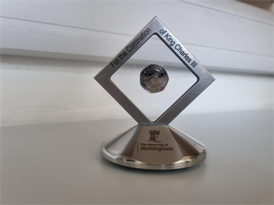 To celebrate the Coronation of King Charles III on Saturday 6th May, a collaboration between the Nanoscale and Microscale Research Centre (nmRC) and the Precision Manufacturing Centre (PMC) has produced a unique gift.