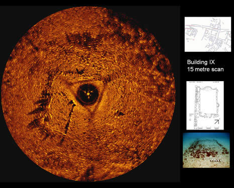 Sector scan sonar images of buildings and structures at Pavlopetri