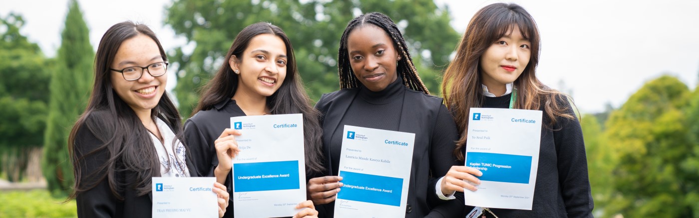 The UK International Postgraduate Excellence Award is the University of Nottingham's scholarship award, designed to support international students who have achieved academic excellence and show true passion for their chosen field of study. We're offering scholarships covering a contribution of £2,000 towards full-time masters tuition fees for high-achieving international students who are currently studying their undergraduate degree in the UK.